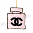 Key visible elements include perfume-bottle silhouette, pink beadwork, black interlocking 'c' icon, hanging loop. These cues help you position the item for the right collection theme, price tier, and shelf placement, while keeping claims limited to what is directly defined by the build and motif.