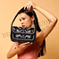 Hand-beaded shoulder bag in Black with Silver & White Bead Accents with a flap-style closure and shoulder strap carry format. Use it to build motif-led accessory stories for boutiques and resort edits, while keeping ordering aligned to stated materials and care notes.