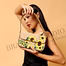 Sunflower / Floral shoulder bag in Beige base with yellow, green & brown beadwork with a Front flap closure and Fixed padded shoulder strap carry format. Use it to build motif-led accessory stories for boutiques and resort edits, while keeping ordering aligned to stated materials and care notes.