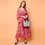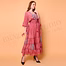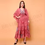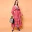 Women’s dress in Coral Pink with subtle all-over printed pattern with a V-back with adjustable tie closure and Long, loose-fit draped sleeves for wholesale-ready assortment building and repeat ordering. Keeps your assortment distinctive with an artisanal, hand-finished look.